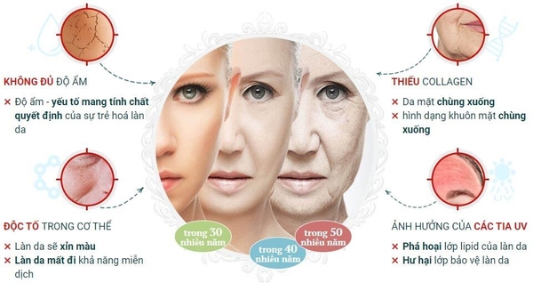 ( Hình ảnh làn da bị lão hóa theo thời gian và thiếu hụt Collagen)
